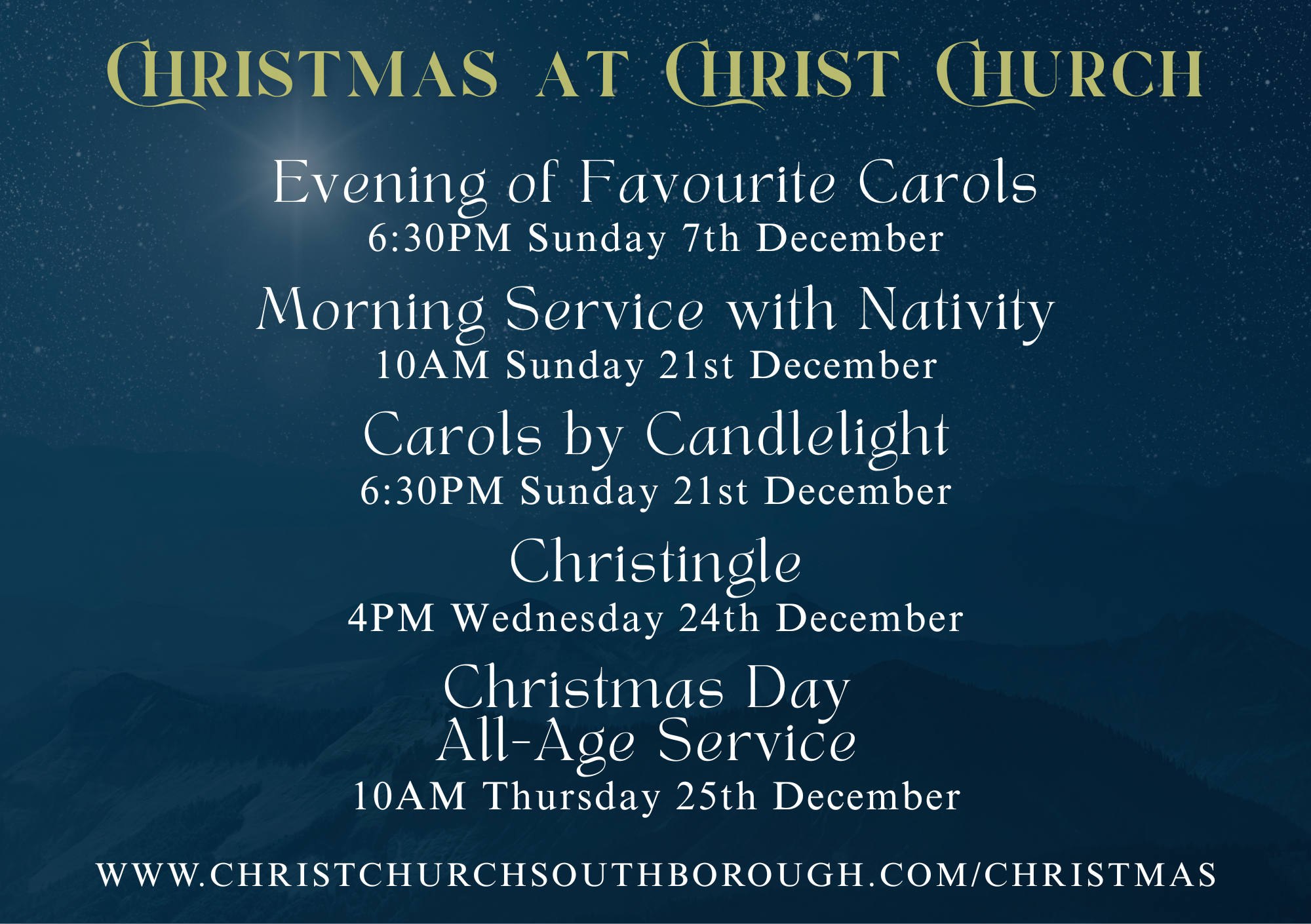 You are very welcome to join us at Christ Church as we celebrate the birth of Jesus this Christmas.