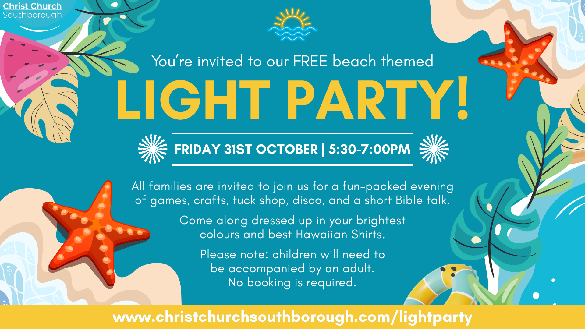 Each year we work alongside New Life Church to run a Halloween alternative party. There is games, crafts, disco, and lots of sweets! The Light Party is free to attend so come along and join the fun!